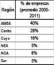 Tabla 8: Distribución de las PyME industriales argentinas por región geográfica