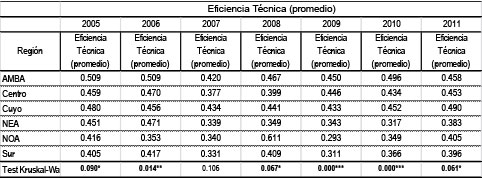 Por otra parte, la región geográfica en donde se localizan las empresas también puede ser considerada a priori como un factor determinante de su nivel de eficiencia en la producción. Lo que además fue verificado en distintas investigaciones58.