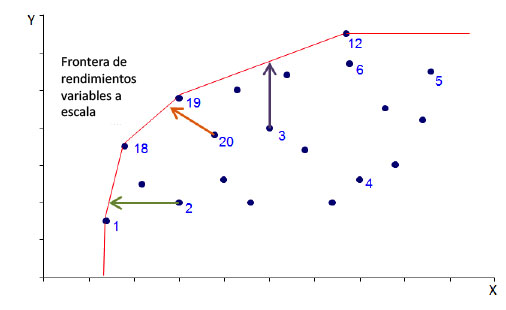 La importancia de poder estimar la frontera bajo RVE radica en que no siempre es posible mantener el supuesto de que existen rendimientos constantes a escala para el conjunto de empresas que se analiza, porque esto implica que todas están produciendo a una escala óptima. Por lo que, si hay diferencias de tamaño entre las empresas de la muestra analizada, al suponer la existencia de RCE se podría considerar como ineficiente una empresa por el hecho de tener una escala de producción menor a otras, aún si es técnicamente eficiente en la producción.