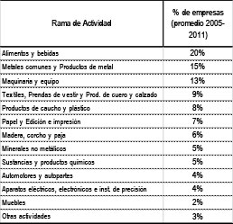 (% de empresas. Promedio 2005-2011)
