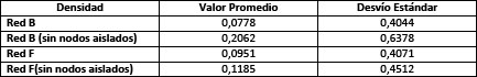 Al eliminar del cálculo a los nodos aislados la densidad de la Red B fue de 20,6% mientras que la Red F fue de 11,8%. Esto responde a que en el recurso del vehículo para el transporte, solo se manifestaron dos asociaciones en la Red F. En ambas redes se detecta una baja densidad, lo que sugiere que pueden estimularse mayores conexiones al interior de las mismas.