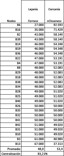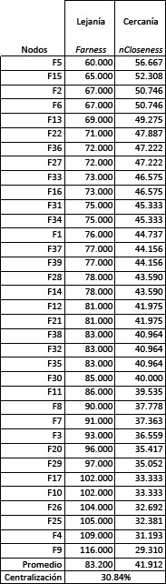 La medida de cercanía permite medir la capacidad de un actor para poder llegar a todos los demás nodos de una red, calculando todas las distancias geodésicas que un nodo necesita para llegar a los demás.