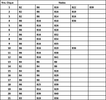 En este sentido es importante destacar también la imputación de la cantidad mínima (por defecto, de 3 nodos como mínimo) de actores que componen una de estas camarillas. Al analizar la cantidad de cliques de la Red B, solicitando al programa que calcule la cantidad con un tamaño mínimo de 3 integrantes por clique, se obtuvieron 21 cliques posibles bajo esta definición, dentro de los cuáles se repite el nodo B6 en 20 oportunidades, siendo el nodo consignado como el referente de la organización. El nodo B16 se encontró en 12 de los 21 cliques, y en menor medida el nodo B2, en 4 oportunidades (Tabla N° 9).