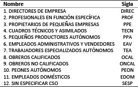 Torrado, para su análisis de las clases sociales, retoma este agrupamiento de ocupaciones de forma tal de construir un común denominador para homologar la información ocupacional de los censos de 1947, 1960, 1970 y 1980, todos ellos con sistemas clasificatorios de ocupación diferentes.